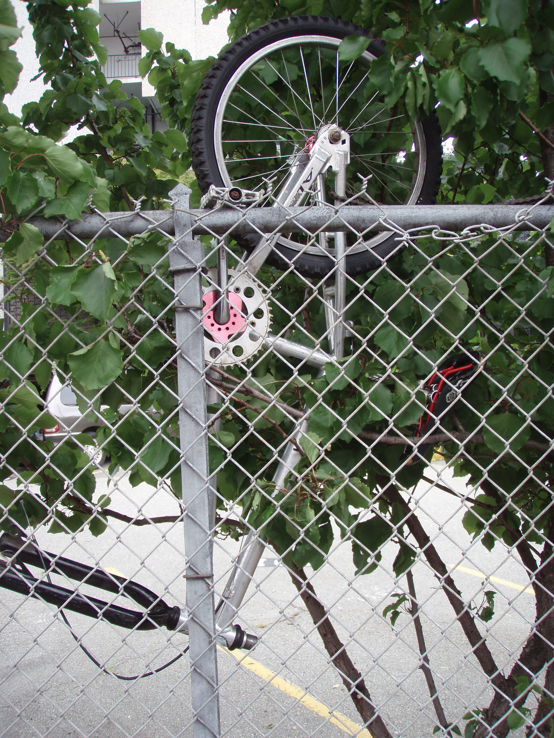 Tossing children’s stuff in trees is all the rage these days. eviloars found this on 100 block Capp: