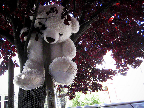 Tossing children’s stuff in trees is all the rage these days. eviloars found this on 100 block Capp: