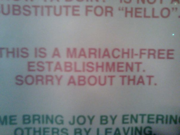 Yeah, we wouldn’t want music to distract us from eating our overpriced and overspiced cheap fare. BTW, if you are gonna ban Mariachis I suggest you ban condensed rice from your restaurant as well.