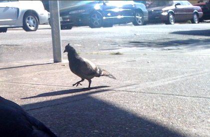 I HAVE TOTALLY SEEN THIS PIGEON. crazy. i thought it was one its ways out in terms of living…apparently its just rocking out.