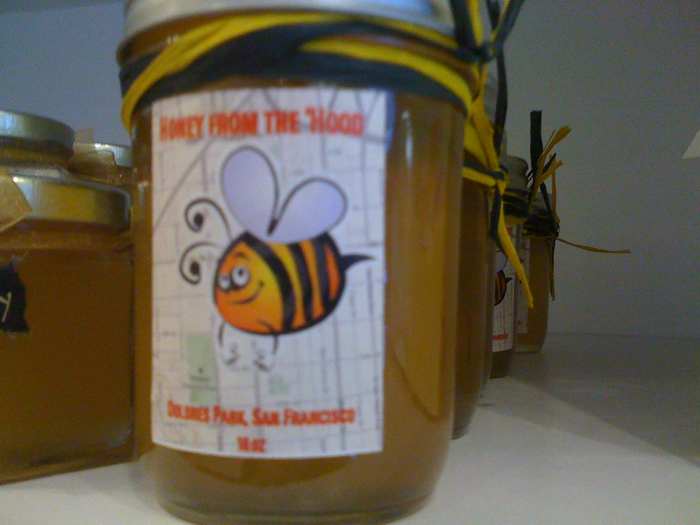 From the HMS Beekeeper twitternets: “A 6 y/o girl and her 13 y/o brother just sold me their Dolores park ‘honey from the hood.’”