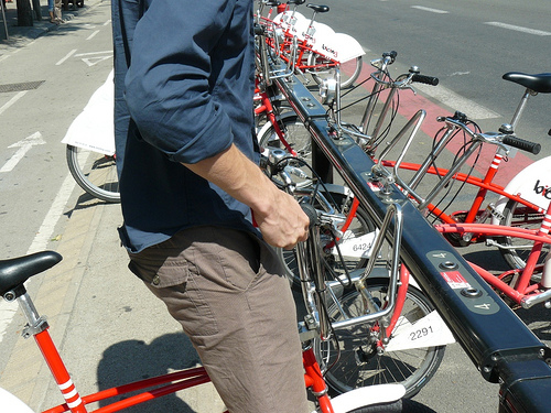 It’s called “Bicing,” and Barcelona Cycle Chic this week shows us how it works.