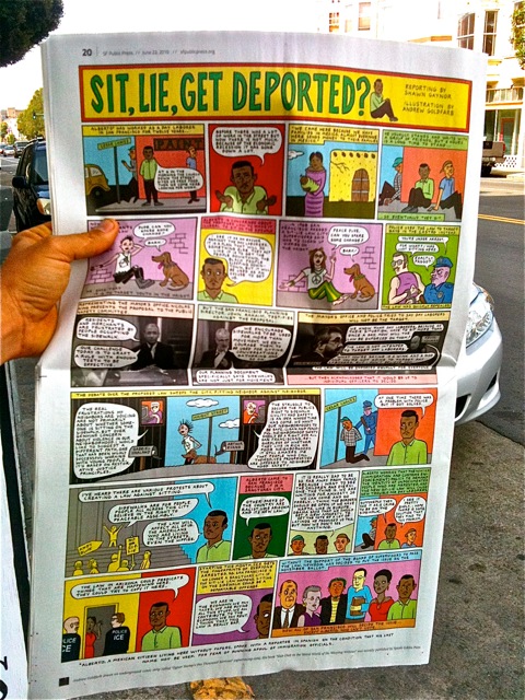 The first print edition of the SF Public Press just came out this week and it includes an awesome full page comic strip from bad-ass underground comic strip artist Andrew Goldfarb and independent journalist Shawn Gaynor.