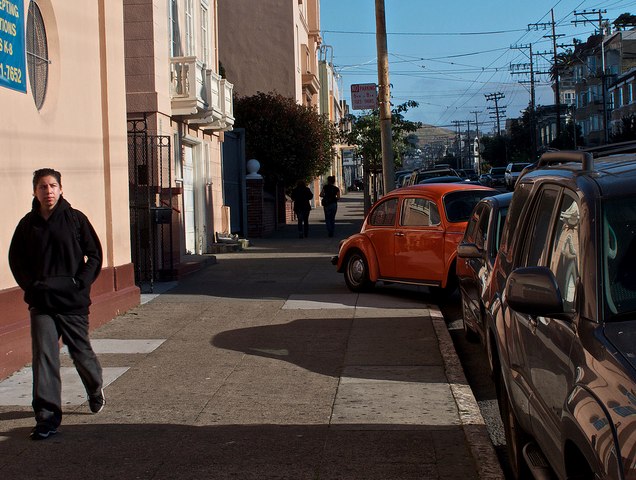 That orange VW belongs to a gentleman that works there, at St Charles Borromeo Catholic Church, on SVN@18th streets. He was probably loading/unloading something.