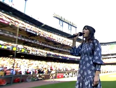 Her whole folksy twang seems like such an affectation I can’t stomach it. But, I do think she would have been better off singing the national anthem than Ben Gibbard. That was painful.