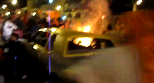 Oh noes! A car plowed into our peaceful crowd of bonfire building, sign smashing, celebratory vandals!