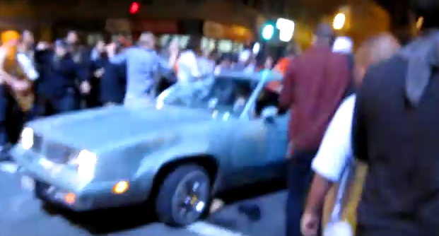 Perhaps the driver ran into a situation similar to this, which also happened last night. Oh, those pesky “innocent revelers.”