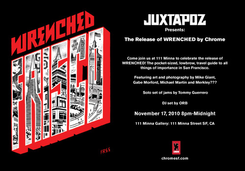 In celebration of WRENCHED, we’ve planned an uber special launch party (Wednesday, 11/17 @ 111 Minna) featuring special guests, live performances and one-night-only art installations. And of course, guests can pick up their free copy of WRENCHED!