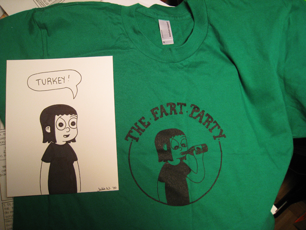 Fart Partier Julia stumbled upon one last Fart Party shirt, from back in the day I guess, and she’s put it on eBay along with the piece of original art pictured above. Turkey! Just in time for the holidays!