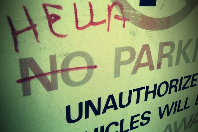 I love this! Anyone dumb enough to use the word “hella” is probably dumb enough to drive to the city and park here, thus getting towed. Works out perfectly!