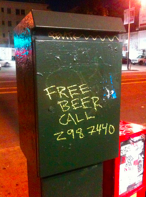 “Free Beer” is the kind of good time we can all appreciate. I’m not sure how this transaction will be carried out, though. Delivery or pickup? Will you be shuffled into a conference room and forced to watch a DVD on Lake Tahoe timeshares?