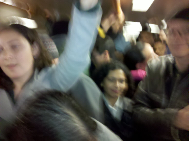 I asked the group of the girls next to me how long the train had been in the station, and they said ten minutes. ”Ooh,” I thought, “that’s not good,” as the BART loudspeaker announced that a train was stuck at West Oakland and that nothing was getting through for a while. However, without any alternative for transportation, I decided to stick it out, as my new companions proved to be quite engaging. I learned about Babyfat, which apparently is a store where you don’t want your girlfriend shopping, but I feel would make a fantastic name for the next great hip-hop artist. Other folks decided to stick it out as well, and soon our train was completely packed. After another 10 minutes or so the doors closed and we slowly inched our way through the tunnel, stopping occasionally while the trains stacked in front of us took their time navigating their way.