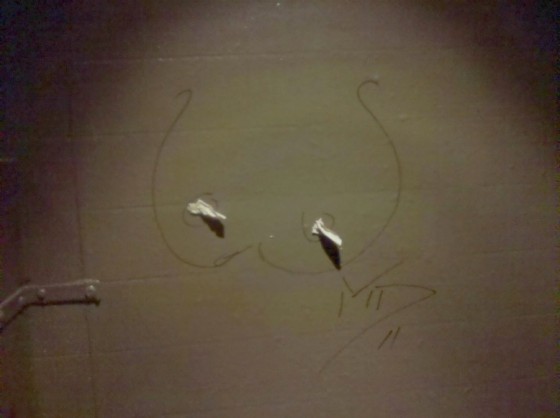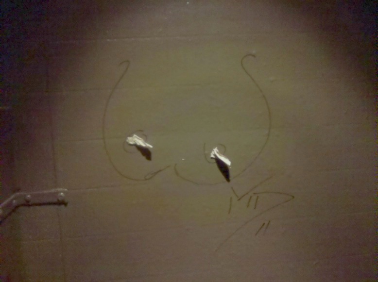 Bathroom art taken to the next dimension at the Makeout Room. So anatomically accurate–this “MD” must be a doctor or something.