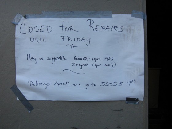 But don’t worry purists, it appears they’re just fortifying the back bar (or maybe that’s just today’s project). The bar is scheduled to re-open on Friday. Until then, the fine folks there have been nice enough to provide us with alternative solutions for getting our swerve on. Cheers to that.