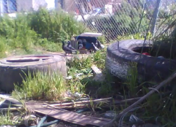 Talent Is An Asset stumbled upon this little pigeon theater troupe gearing up for a performance in their little ramshackle playhouse.