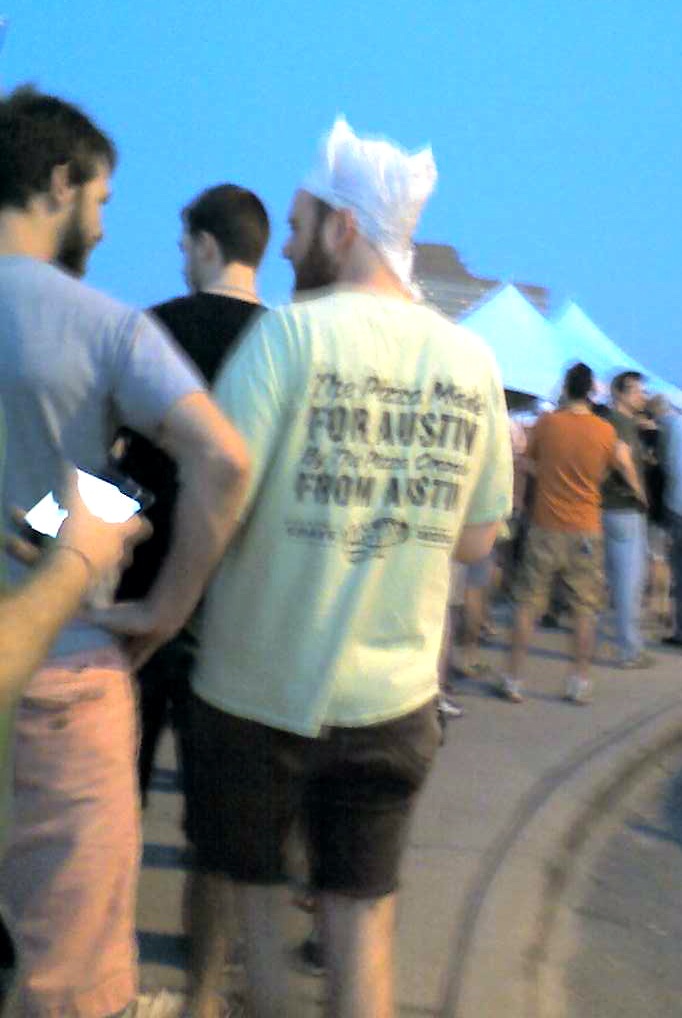 But seriously, he was serious about this hat. Wore it confidently for minutes upon minutes in this long line to get into the free Strokes show, which was awesome.