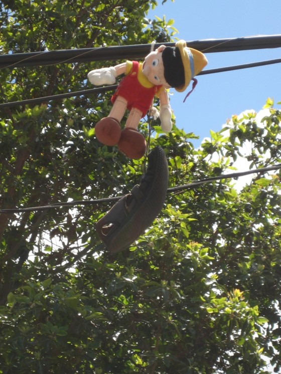 Okay, if shoes on a wire mean you can score some dope on this block, surely a shoe and a Pinocchio means something even more sinister — but what exactly? One shudders to think.