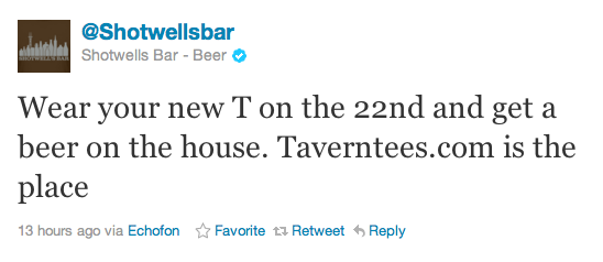 Plan ahead! (You can go to that URL or just pick up a shirt at the bar.)