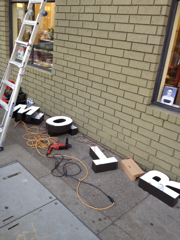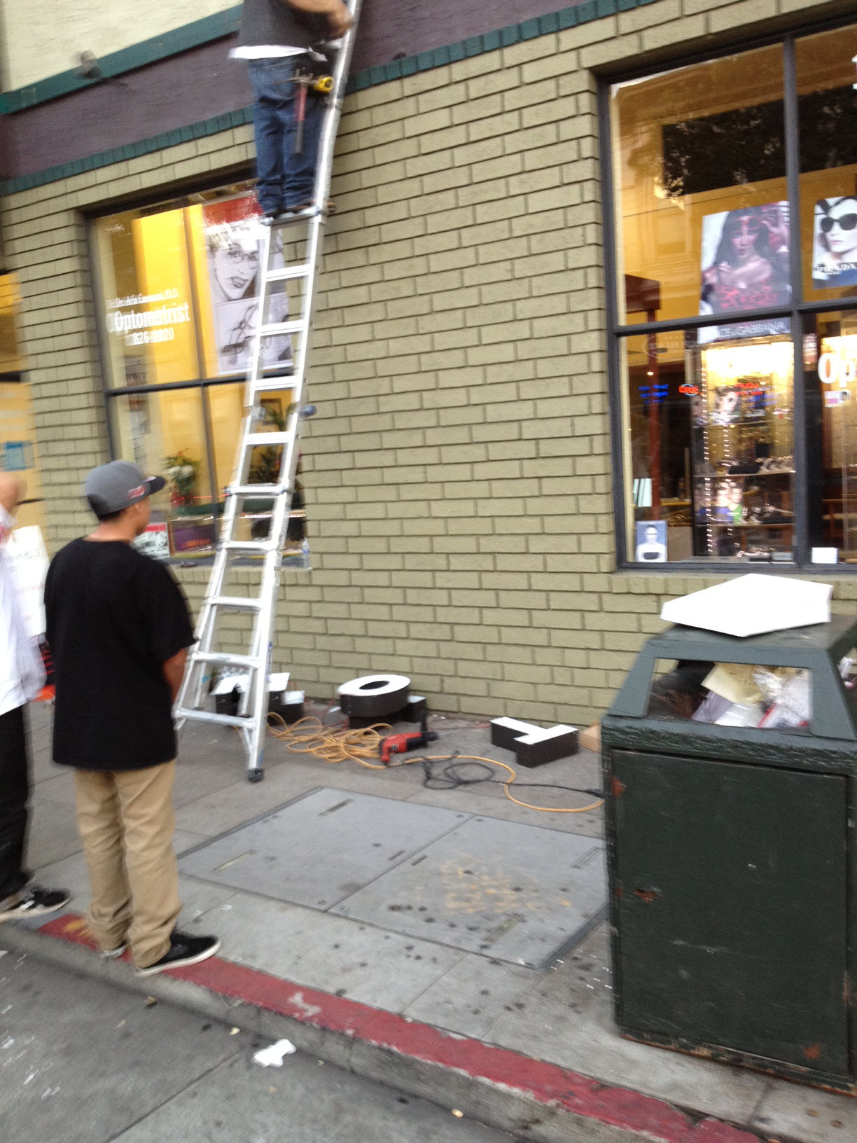 I saw them putting it up. It spelled ‘optometrist.’ We joked that they must be in a panic now that they’ll have to compete with that new uber cool frames shop/optometrist a block or two down Valencia.