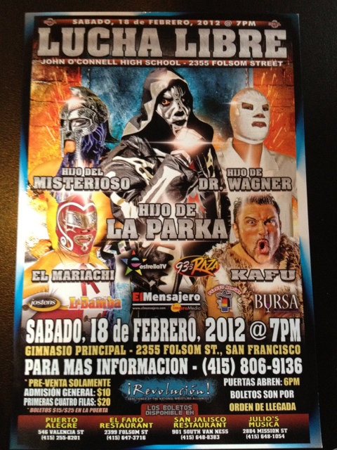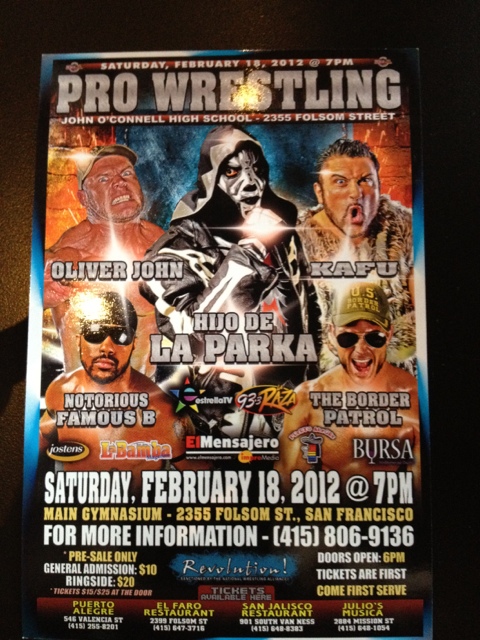 There finally appears to be a battle for neighborhood domination brewing that will settle the score once and for all, and it’s taking place at a local high school this Saturday. I have a feeling that “the Border Patrol” is going to get his ass kicked by either Hijo de la Parka or Hijo del Misterioso, and that’s only if El Mariachi doesn’t get to him first. Of course, you can probably count on the Notorious Famous B to bring his A game (or in this case, B game) to the ring as well.