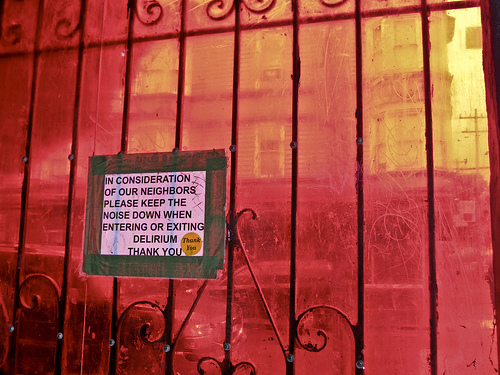 i heard a window shatter cuz people were through big glass bottles (which they must have got out of the trash outside on the street) at the window of gestalt