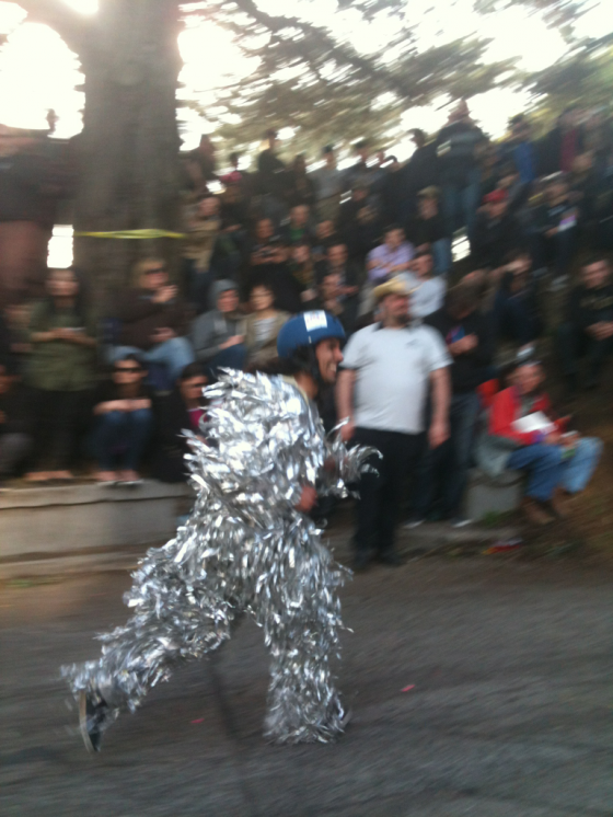 I saw that guy save a crying, little girl who fell off her big wheel from the pack of racers screaming down the hill behind her.