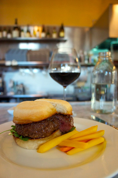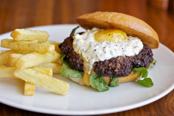 To make it more wine-friendly for this wine-focused restaurant, the beef is mixed with mildly stinky Epoisses cheese, making it extra-good with a lean French red. It’s an incredibly juicy, flavorful burger that taste redolently of the cheese, and less of the beef, but for that reason it’s one of the most unique burgers in town.