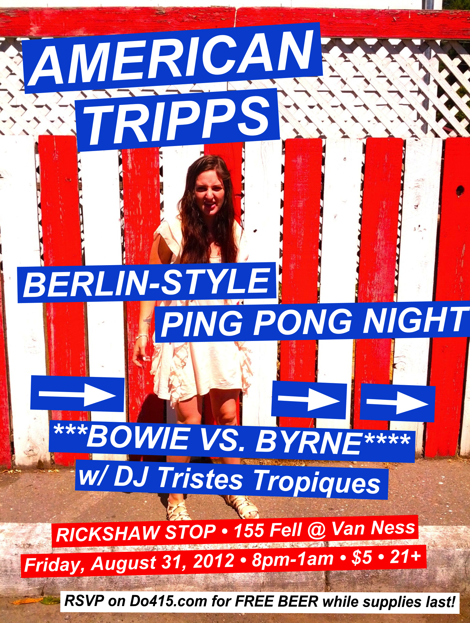 Kick your Labor Day weekend off right! AMERICAN TRIPPS returns to RICKSHAW STOP for a night of Berlin-style ping pong, foosball, skeeball, dancing, drinking, romancing, and general merriment!