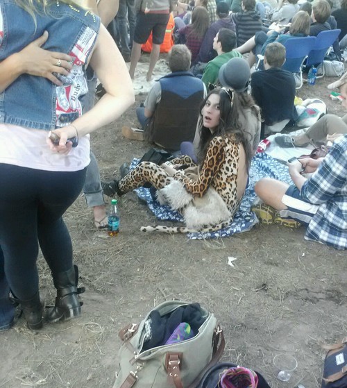 I was going to say that its kind of mean to post this pic (presumably without her permission), but then I realized that if you go around dressed like a “sexy leopard” at a heavily-attended music festival, you’re kind of begging for someone to post pictures of you on the internet and make fun of you.