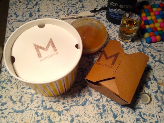 Four big pieces, plus biscuits and gravy and sides. At an even $25 for the spread, it’s a little pricier than Popeye’s, but good lord the Maverick fried chicken is top notch. Normally this will be available Mondays only, but this week only, in honor of the Super Bowl, they’re doing it Sunday too. Plan ahead.