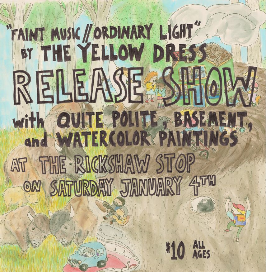 We’ve been working on our new album, “Faint Music//Ordinary Light” for the better part of a year now, and at last at last it is done! Recorded and mixed to tape at Tiny Telephone Studios and featuring the band in full 8 member formation, we couldn’t be prouder of the results. Come celebrate with us at the Rickshaw Stop, a venue most near and dear to us, Saturday January 4th and delay the crushing cold and darkness of winter one week further.