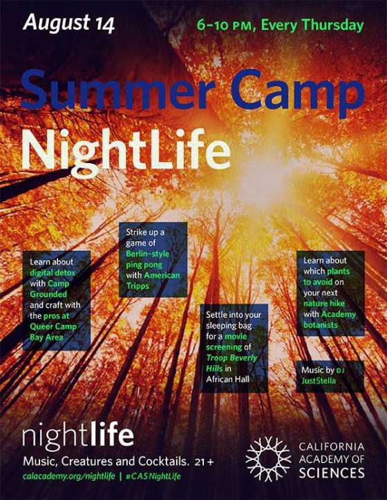 DJ JustStella lives upstairs from me and is an awesome DJ and dedicated San Francisco party historian. (You can hear her DJ regularly on BFF and occasionally at American Tripps.) This Thursday night she’s doing a summer-themed set on the main stage for the “Summer Camp” edition of NightLife and I bet it’s going to rock.