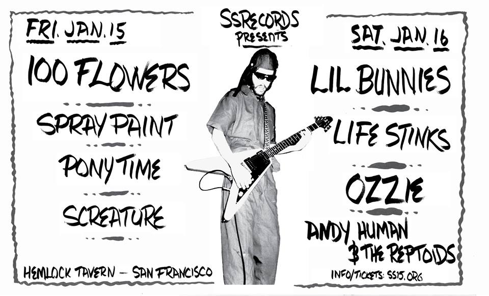 100 Flowers: The original line-up of this legendary band will be playing their songs. Morphed from the legendary Urinals, 100 Flowers made one perfect LP and a handful of stellar eps, singles, and comp tracks. They ended in 1983 and have since played only a handful of times, most recently for the reissue of their lone album on Superior Viaduct. This is the original line-up of the band 100 Flowers reassembled just to play SS15.