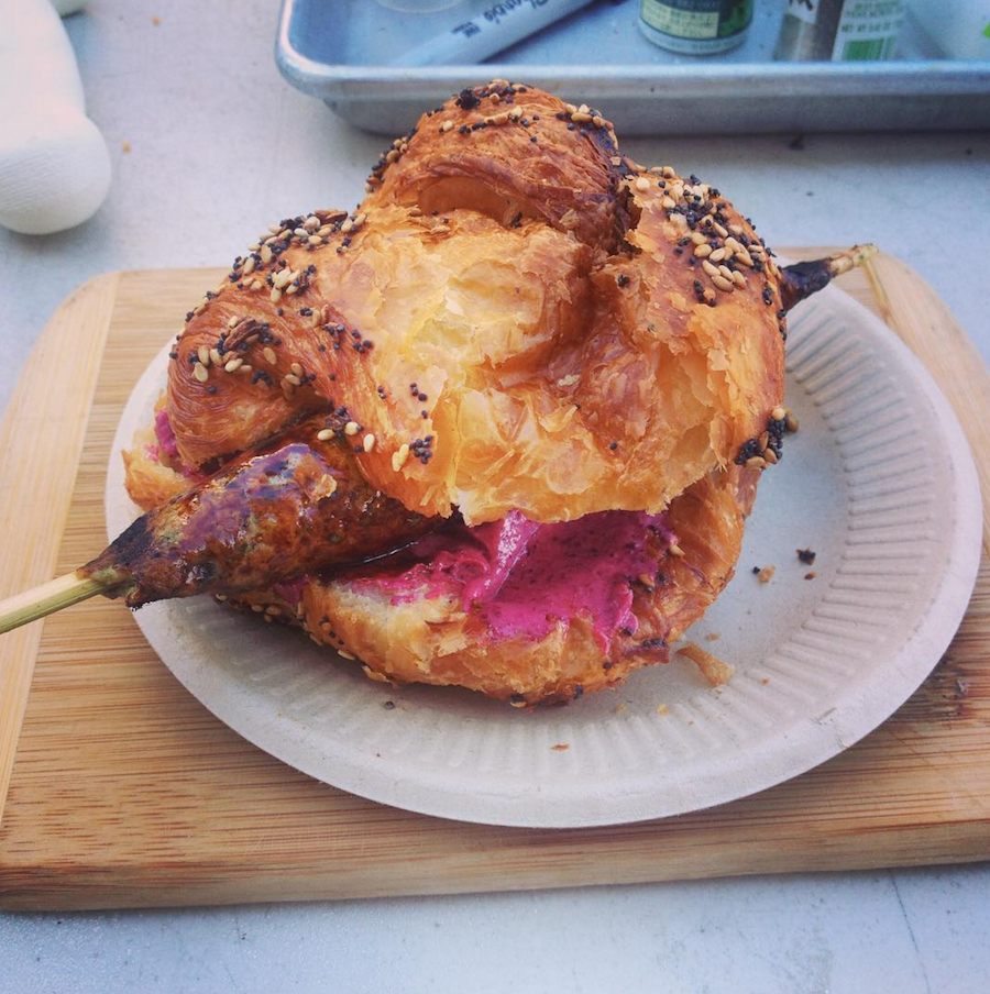 It’s a skewer of tsukune (chicken meatball), hot off the yakitori grill, and they pop it on an everything croissant (by Neighbor Bakehouse in the Dogpatch), along with some tasty sauce! It’s the best! I could’ve eaten four in a row, but I only had two, and then I just dreamed about it for a rest of the weekend, and I wish I could have another one right now. It’s the best sandwich in SF!
